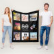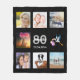 A gift for a woman's 80th birthday, celebrating her life with a collage of 8 of your photos. Templates for a name, age 80 and a date. Date of birth or the date of the anniversary. White and grey coloured letters. Black coloured background.
