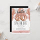 hello 80 birthday party save the date pink glitter balloons. Save the date rose gold number balloons with faux pink glitter. Girly, elegant, trendy. Easy to adjust template.