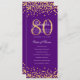 80th Birthday Program Gold Confetti Menu Purple Invitation