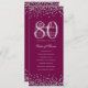 80th Birthday Program Silver Confetti Menu Magenta Invitation