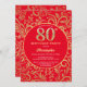 80th Birthday Red and Gold Floral Pattern Invitation