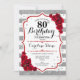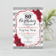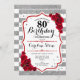 80th Birthday - Red Silver White Stripes Roses Invitation