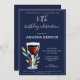 80th Birthday Red Wine Navy Blue Party Invitation