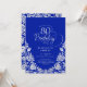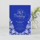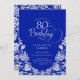 Royal blue silver elegant 80th birthday party invitation. Classy design featuring roses, faux silver foil and typography script font. Trendy invite card perfect for a stylish female bday celebration. Personalise with your own details. Can be customised to any age. Printed Zazzle invitations or instant download digital printable template.