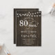 Rustic simple design with dark brown wood pattern and fairy string lights. Features script font. Cheers to 80 years! Can be personalized into any age! Message me if you need further customization.