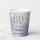 For a glamourous and girly for a 80th birthday party. A faux silver metallic looking background. On the front and the back: Personalise and add a name and a date. Decorated with faux glitter dust.