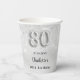 For a glamourous and girly for a 80th birthday party. A faux silver metallic looking background. On the front and the back: Personalise and add a name and a date. Decorated with faux glitter dust.