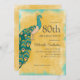 80th Birthday Teal Yellow Watercolor Peacock Invitation