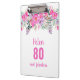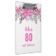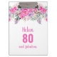 Elegant clipboard with a pink purple floral design on a white background and a pink script text. Personalise with your name, age and text.