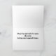 This card is great fun and good quality. I loved the humour inside and on the back. There is the opportunity to change the orientation of this card from landscape to portrait, which I did. It is relatively straightforward to amend the typeface to fit the new orientation. It was well packaged with no plastic. The printing on this card is excellent.