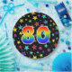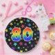 This colourful, cheerful, and fun paper plate design features a large number "80" coloured with a rainbow spectrum gradient inspired pattern. The background features a pattern of colourful star shapes. Fun paper plates like this might be used at a celebration being held to observe somebody’s eightieth birthday, or a couple’s eightieth anniversary, or some other 80th event. [~Z0000493]