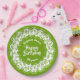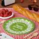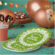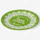This is a green and white random number pattern with fancy scallops and custom text. The green milestone number 80 is scattered over a white background. The design is a very cool fun way to celebrate the past 80 years at your over-the-hill, 80th birthday party.