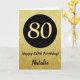 80th Happy Birthday Black and Gold Glitter Card with personalised name. For further customisation, please click the "Customise it" button and use our design tool to modify this template.