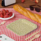 This cool design is a gold and white random number pattern with milestone number 80 repeated in varied sizes and angles in an all-over print.