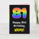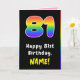81st Birthday: Colourful Rainbow # 81, Custom Name Card