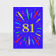 An explosive 81st birthday card! What a wonderful way to send birthday greetings. The number 81 in bright yellow with an explosion of bright colours and stars.