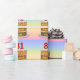 This cheerful and joyful birthday wrapping paper design features a cartoon-style depiction of a three-tier birthday cake having number-shaped candles on top showing the age “81“, along with the message “HAPPY 81ST BIRTHDAY,”, and an editable recipient name. The background features a multicolored pastel rainbow spectrum inspired gradient pattern. Fun wrapping paper like this might be used when giving a gift or present in honour of somebody’s 81st birthday. [~Z0000622]