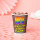 This vibrant and exciting urban street art and graffiti inspired birthday paper cup design features a large number “81” having a colourful rainbow spectrum gradient inspired pattern. It also features the message “Happy 81st Birthday,”, and a personalised name. The background has a brick wall pattern. Vibrant, colourful paper cups like this might be fun to have at a birthday celebration/party being held in celebration of somebody’s 81st birthday. [~Z0000543]