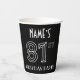 This elegant Roaring Twenties era inspired art deco look birthday-themed paper cup design features a customisable name, along with the message “81ST BIRTHDAY PARTY!”. The number “81ST” has a fancy geometric lined look. Stylish birthday themed paper cups like these might be used at a birthday party for somebody who is celebrating their eighty-first birthday, or some other 81st event. [~Z0000658]