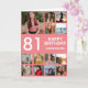 81st Birthday Photo Collage 13 Photos Pink & White Card