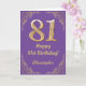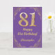 81st Birthday Purple and Gold Glitter Frame Card