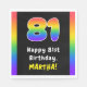 This cheerful and exciting birthday-themed paper napkin design features a large number “81“ with a vibrant rainbow spectrum inspired gradient pattern, along with the message “Happy 81st Birthday,”, and an editable recipient name. Birthday themed paper napkins like this might be fun to use at a party being held for somebody who is celebrating their 81st birthday. [~Z0000629]