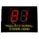 This geeky and nerdy birthday-themed gift bag design features a large number "81" having a red seven segment digital display inspired look, along with the message "Happy 81st Birthday," and a personalised name in nerdy yellow text, on a black coloured background. Customisable gift bags like this might be used for wrapping presents or gifts being given in honour of somebody’s eighty first birthday. [~Z0000389]