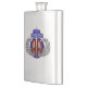 The product is a good size and came exactly as it was pictured. The lid is not attached to the flask, which could be dangerous on drunken nights... The print came out surprisingly well and looks very sharp. Would definitely recommend.
