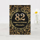 82nd Birthday Black and Gold Floral Pattern Card