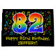This fun, colourful, and vibrant birthday gift bag design features a large number "82" with a rainbow spectrum gradient inspired pattern, along with the message "Happy 82nd Birthday,", and a personalised name. Part of the background has a pattern of various music notes and symbols having a variety of colours and sizes. A birthday themed gift bag like this might be a fun way to wrap a gift or present being given to celebrate somebody’s eighty second birthday. [~Z0000425]