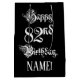 This ornate and opulent birthday-themed gift bag design features the message “Happy 82nd Birthday,” in formal script style text, on a black coloured background. It also features a customisable recipient name. A birthday themed gift bag like this might be used when giving a gift or present in celebration of somebody’s 82nd birthday. [~Z0000557]