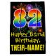This fun, colourful, and exciting birthday themed giftbag design features a large number "82" with a rainbow spectrum gradient style pattern, along with the message "Happy 82nd Birthday,", and a custom recipient name. It also has a colourful background pattern inspired by the look of bursting celebratory fireworks. A fun gift-bag like this might be used when wrapping presents being given to somebody in celebration of their eighty second birthday. [~Z0000509]