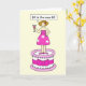 A cartoon lady standing on top of a giant cake saying '82 is the new 62'. The lady is holding a cocktail in one hand.