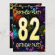 Add a name to customise this unique party invitation. 82nd birthday party invitation with fireworks and bubbles. Add your details inside to create a perfect fun invite. Light up the sky with these glorious fireworks. An invitation to a birthday party that has style and loads of fun.