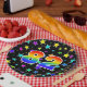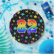 This fun, colourful, and cheerful paper plate design features a large number "82" coloured with a rainbow spectrum gradient inspired pattern. The background features a colourful star shapes pattern. Paper plates like this might be fun to use at a party being held to celebrate somebody’s eighty second birthday, or a couple’s eighty second anniversary, or some other 82nd event. [~Z0000493]
