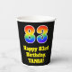 This colourful and exciting birthday-themed paper cup design features a large number “83” having a rainbow spectrum gradient inspired pattern. It also features the message “Happy 83rd Birthday,”, and a custom name. The background is coloured black. Colourful, vibrant paper cups like this might be fun to have at a birthday party/celebration being held in celebration of somebody’s 83rd birthday. [~Z0000537]
