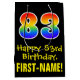 This exciting, fun, and colourful birthday-themed giftbag design features a large number "83" with a rainbow spectrum gradient inspired pattern, along with the message "Happy 83rd Birthday,", and a custom recipient name. It also has a black-coloured background. A gift bag like this might be a fun way of wrapping a birthday present or gift being given to somebody who is celebrating their 83rd birthday. [~Z0000512]