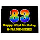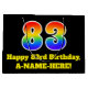 This vibrant and colourful birthday-themed gift bag design features a large number "83" with a rainbow spectrum gradient inspired pattern, along with the message "Happy 83rd Birthday,", and an editable name. It also has a black-coloured background. A gift bag like this might be used when wrapping gifts being given to somebody in celebration of their 83rd birthday. [~Z0000521]