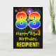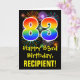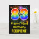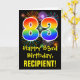 The front of this colourful, fun, and exciting birthday greeting card design features a large number "83" with a rainbow spectrum gradient inspired pattern, along with the message "Happy 83rd Birthday,", and an editable recipient name. The front additionally has a colourful background pattern inspired by bursting celebratory fireworks. The inside features a custom birthday greeting message, or could perhaps be cleared and left blank if a message is to be written by hand instead. A personalised birthday card like this might be a fun way to celebrate somebody’s eighty third birthday. [~Z0000442]