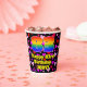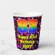This joyful and fun birthday-themed paper cup design features a large number “83” having a rainbow spectrum gradient inspired pattern. It also features the message “Happy 83rd Birthday,”, and an editable name. The background features a pattern of purple, red, and pink heart shapes. Happy, joyful paper cups like this might be fun to use at a birthday party/celebration being held in celebration of somebody’s 83rd birthday. [~Z0000548]