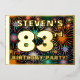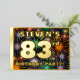 The front of this joyful eighty-third birthday party/celebration foil invitation card design features a customisable name, a large number “83rd”, the message “BIRTHDAY PARTY!”, and a border. The background of the front has an exciting, multicolored pattern inspired by bursting celebratory fireworks. The back features personalised details about the event, such as the date, time, venue/location, and any other important information. Customised invitations like these might be a fun way to invite attendees/guests to a birthday gathering/party being held to honour somebody’s 83rd birthday. [~Z0000602]