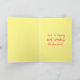 This card is great fun and good quality. I loved the humour inside and on the back. There is the opportunity to change the orientation of this card from landscape to portrait, which I did. It is relatively straightforward to amend the typeface to fit the new orientation. It was well packaged with no plastic. The printing on this card is excellent.
