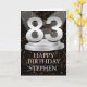 Make an 83rd birthday card extra special by adding a name. The number 83 on a plinth with spotlights shining to light it up!