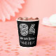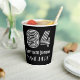 This vintage style and 1920s-1930s style inspired birthday paper cup design features a large art deco inspired appearance number “84”, along with the birthday greeting message “Happy 84th Birthday,” and a customisable name. The background is coloured black. 1920s-1930s style inspired paper cups like this might be fun to use at a party in honour of somebody’s eighty fourth birthday. [~Z0000542]