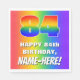 This exciting and joyful birthday-themed paper napkin design features a large number “84” having a colourful rainbow spectrum inspired gradient pattern. It also features the message “HAPPY 84th BIRTHDAY,”, and a customisable recipient name. The background also features a fun multicolored rainbow spectrum inspired gradient pattern. Birthday themed paper napkins like this might be a fun way to celebrate somebody’s eighty fourth birthday. [~Z0000573]