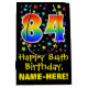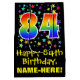 This vibrant, exciting, and fun birthday giftbag design features a large number "84" with a rainbow spectrum gradient inspired pattern, along with the message "Happy 84th Birthday,", and an editable recipient name. It also has a colourful background pattern featuring star shapes of various sizes. A gift bag like this might be used when giving a gift or present in honour of somebody’s eighty fourth birthday. [~Z0000510]