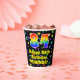 This colourful and fun birthday paper cup design features a large number “84” having a rainbow spectrum gradient inspired pattern. It also features the message “Happy 84th Birthday,”, and a custom name. The background features an exciting and colourful pattern having many star shapes with different sizes and colours. Colourful, vibrant paper cups like this might be fun to use at a birthday celebration/party being held to celebrate somebody’s eighty fourth birthday. [~Z0000540]