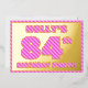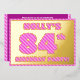 The front of this fun and bold eighty-fourth birthday party foil invitation card features a custom name, a large number “84th”, the message “BIRTHDAY PARTY!”, and a border, all featuring a feminine light pink and dark pink striped pattern. The back features personalised details about the event, such as the date, time, venue/location, and any other information that may be important. Customised invitations like these might be used to invite guests/attendees to a birthday gathering/party being held in celebration of somebody’s 84th birthday. [~Z0000597]