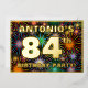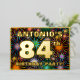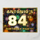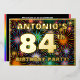The front of this eye-catching eighty-fourth birthday celebration/party foil invitation card design features a personalised name, a large number “84th”, the message “BIRTHDAY PARTY!”, and a border. The background of the front has an upbeat, colourful bursting celebratory fireworks-inspired pattern. The back features personalised details about the event, such as the date, time, location/venue, and any other information that may be relevant. Personalised invitations like these might be a fun way to invite attendees/guests to a birthday gathering being held in celebration of somebody’s 84th birthday. [~Z0000602]