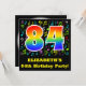 The front of this fun, vibrant, and colourful birthday party invitation design features a large number "84" with a rainbow spectrum gradient inspired pattern, along with a custom name and the message "84th Birthday Party!". Part of the background has a fun and colourful music notes and symbols pattern. The back features editable details regarding the event that the potential guests are being invited to. Vibrant, personalised birthday party invitation cards like this might be sent to potential guests of a celebration being held to honour a singer’s, a musician’s, a song composer’s, or somebody else’s eighty fourth birthday. [~Z0000427]